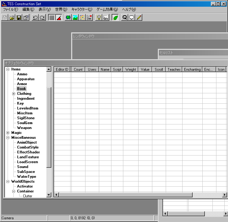 Oblivion.esmを読み込んだ状態で、オブジェクトウィンドウ(Object Window)を見てみましょう。