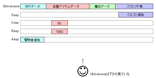 Oblivionは極めておおざっぱに言ってしまえば、以下のファイル群から構成されています。